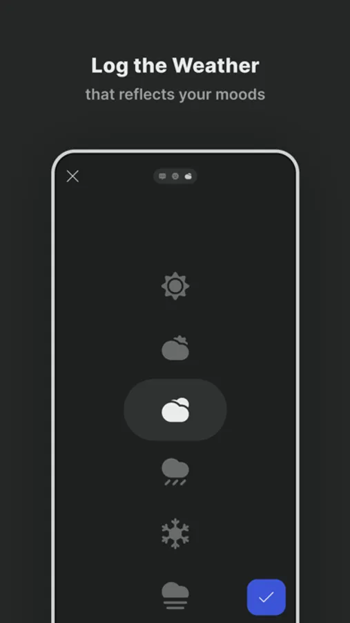 Weather can have a huge impact on our mood and memories. Whether it's a clear day without a single cloud or a rainy day that reflects your mood, jot it down with our app.