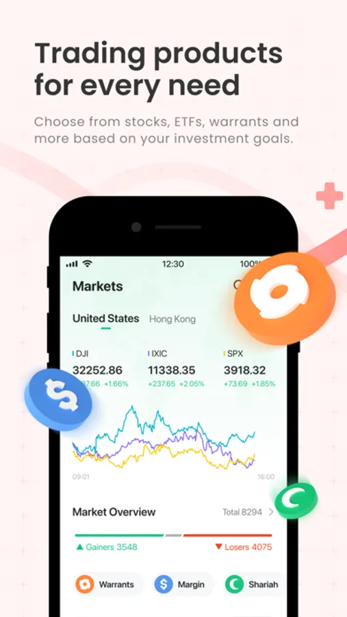 ● Easily invest in HK and US stocks with ringgit.
