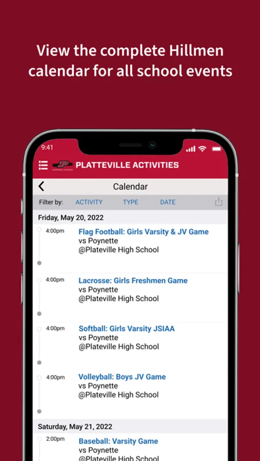 The Platteville Activities App is your complete source for all of your team’s information including schedules, rosters, scores, photos, highlights and more.