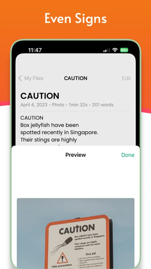 • Text to Audio Conversion: Easily convert text from images, PDFs, and documents into audio for listening.