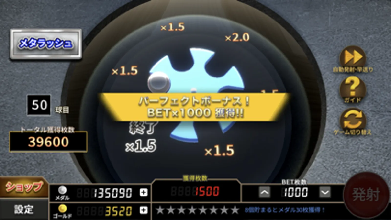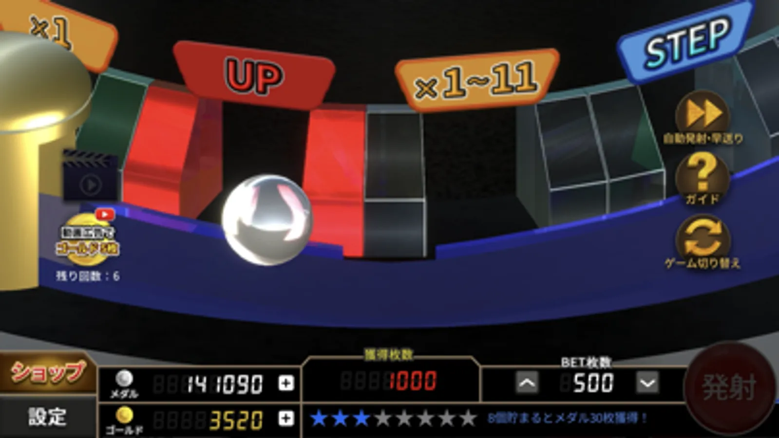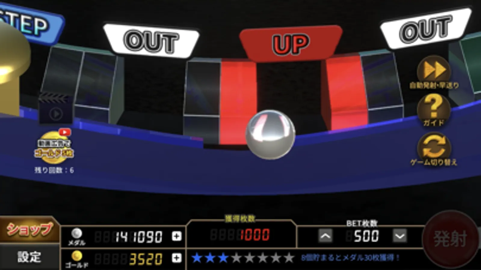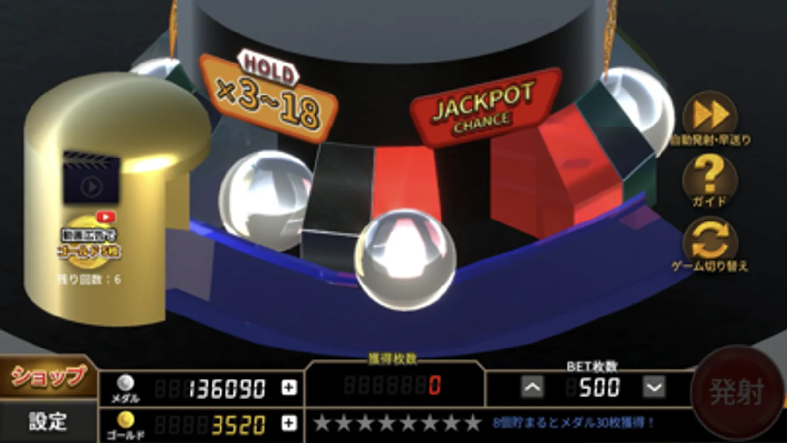 ログインボーナスやショップで獲得したゴールドをBETしてボールを発射!