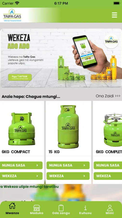 Kwa kutumia app hii, wateja wa bidhaa zetu wanaweza kuagiza bidhaa ziwafikie walipo na kuwekeza kidogo kidogo kwa ajili ya manunuzi ya bidhaa za Taifagas.