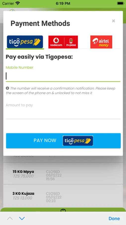 With this application customers can order products for delivery and setup "Wekeza" plans which will allow them to slowly save funds for our products.