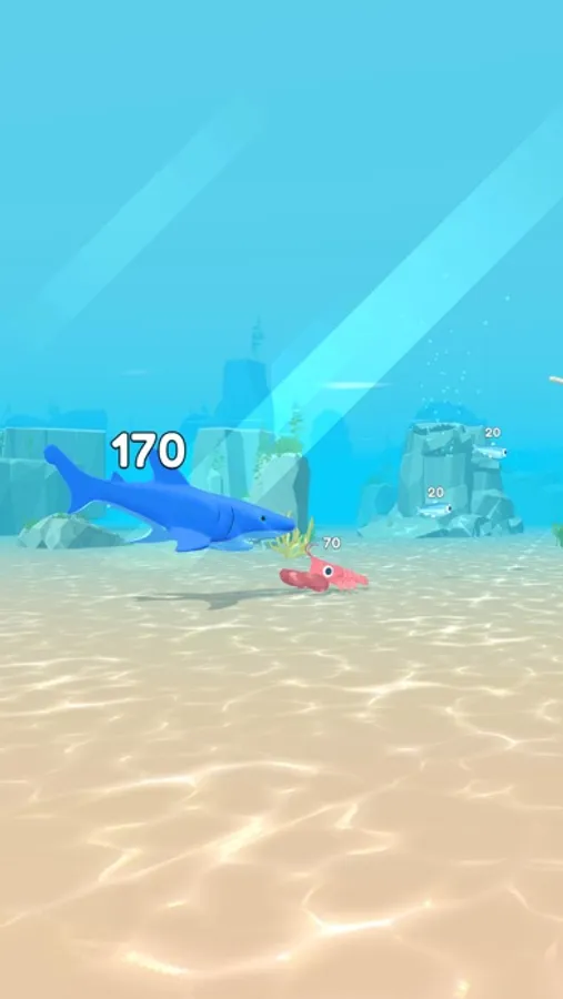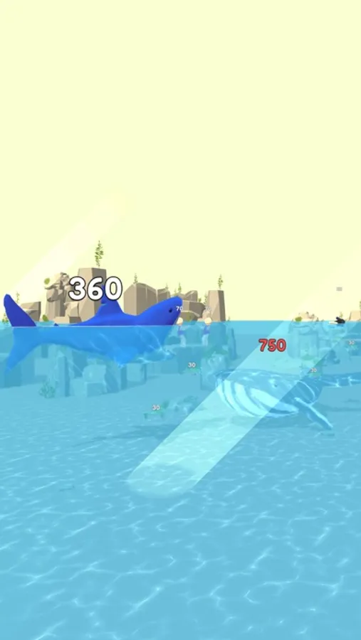 Be the biggest shark! Grow your shark by entering good gates, eating people and smaller fish. Swipe up and down to navigate the level. Be careful of sea mines and stronger fish.