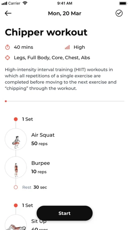 App also uses Apple Health to track energy burned and heart rate during a workout session, if an Apple Watch is used.