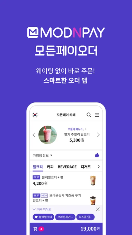 모든페이 오더를 통해 음식점에서의 비대면 주문결제를 경험하세요.