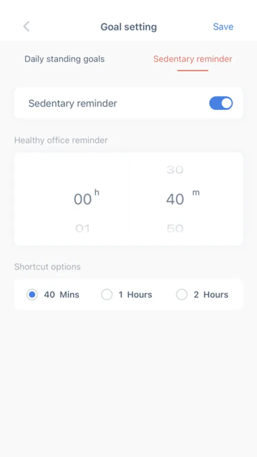 Say goodbye to sedentary habits and hello to improved productivity and overall well-being. Set your standing time goals with ease using the ErgoFX app, ensuring you strike the perfect balance between sitting and standing throughout your workday. With regular reminders, you'll be prompted to switch positions, preventing the negative effects of prolonged sitting, and reducing the risk of health issues.