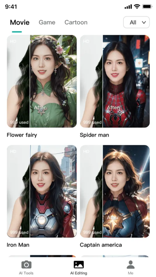 - Magic avatar: Dozens of styles, including sketches, oil paintings, Marvel heroes, original gods, king characters, etc., let your avatar show your personality as you think