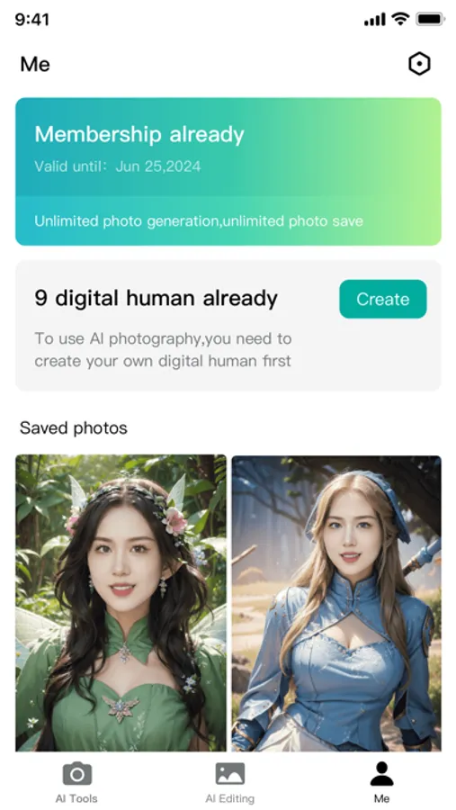 - Member benefits: member templates, unlimited photo generation, unlimited photo storage, digital protagonist creation, fast track