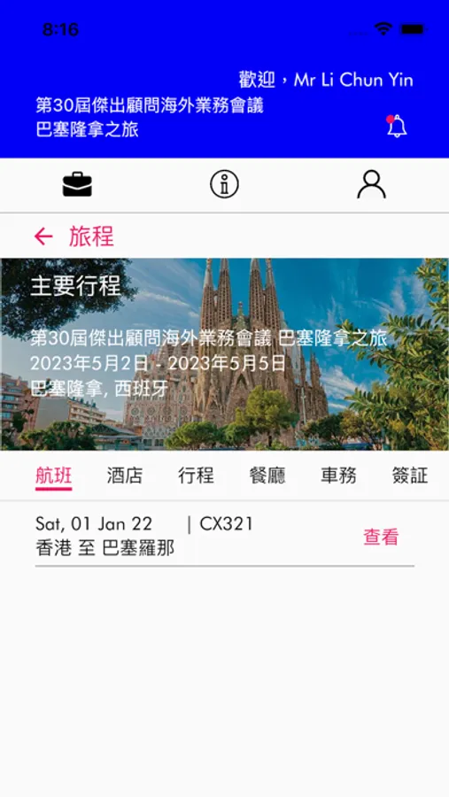 第30屆傑出顧問海外業務會議 巴塞隆拿之旅 行程應用程式。