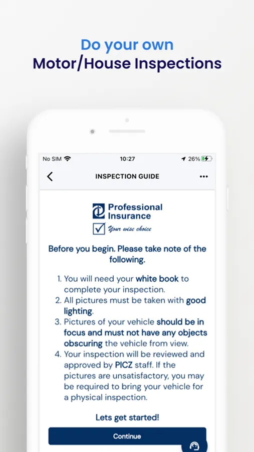 This a self-inspection application for PICZ to be used by customers to perform self-inspection of insured assets for Motor and House policies.