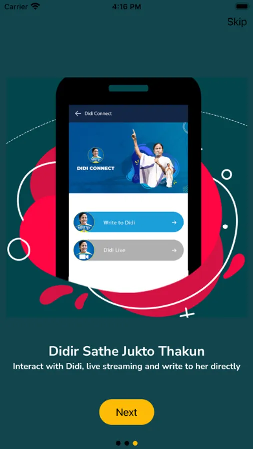 'Didi’r Doot’ is the first of its kind mobile application designed for the ‘People of West Bengal’ to directly connect them with Didi (Smt. Mamata Banerjee) and contribute to achieving her mission & vision for the state.