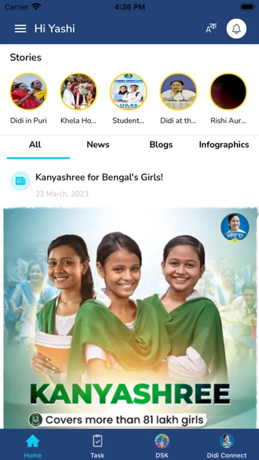 Through this application, the citizens can keep themselves updated with recent events, happenings, and progress in the state, get access to live news feed, photos, videos, statistics. The user can also directly connect with Didi via live streams and video conferences.