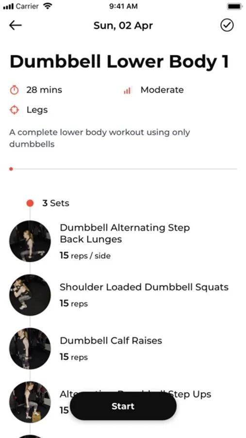 App also uses Apple Health to track energy burned and heart rate during a workout session, if an Apple Watch is used.