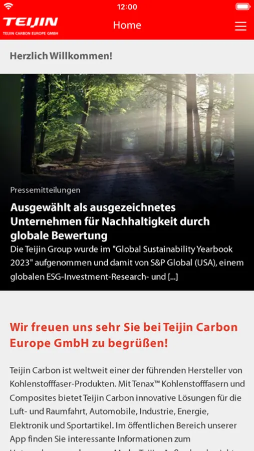 TCE INSIDE ist die App für Kunden, Mitarbeitende und Freunde der Teijin Carbon Europe GmbH. Teijin Carbon Europe ist eine Tochterfirma der weltweit agierenden Teijin Group.