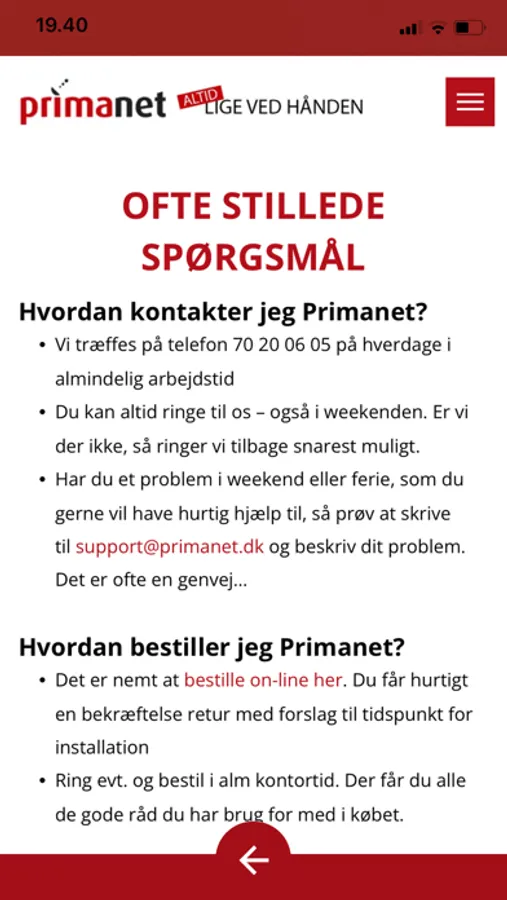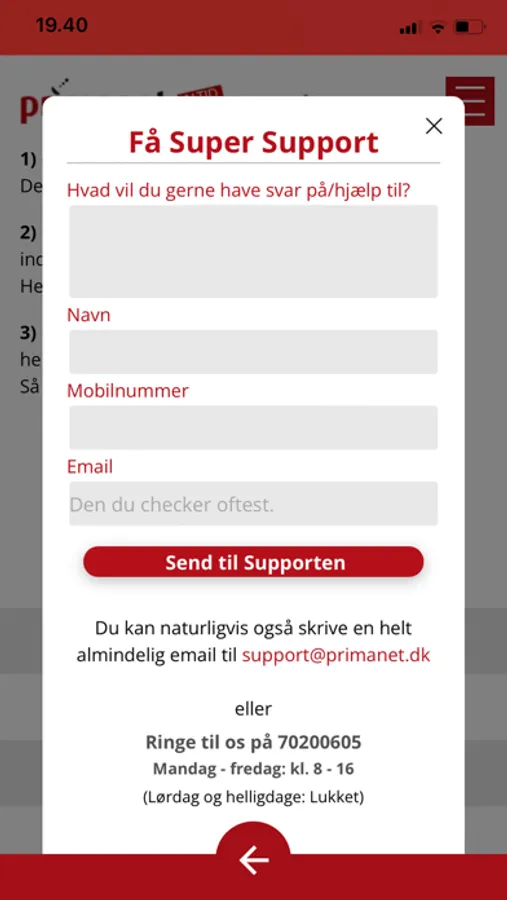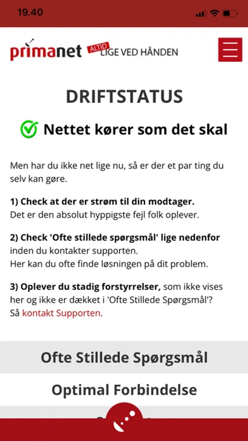 Så kan du lynhurtig checkke Driftstatus og få super support.
