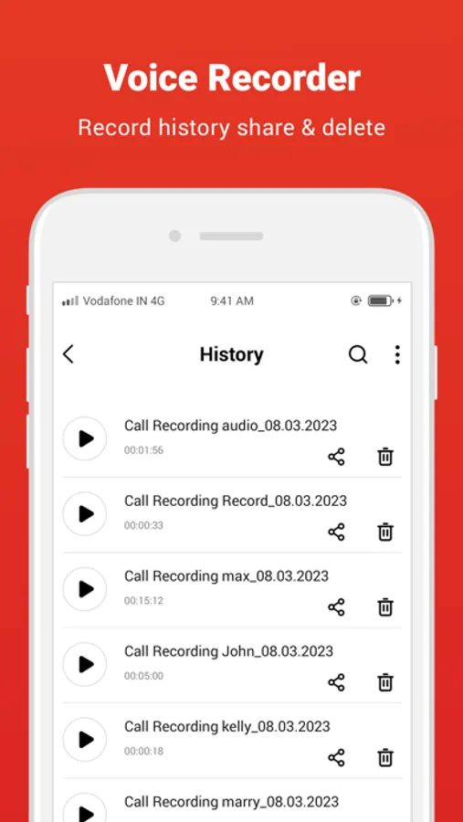 - Send a recording and share a note via email, sms, mms, facebook, WhatsApp, dropbox etc...