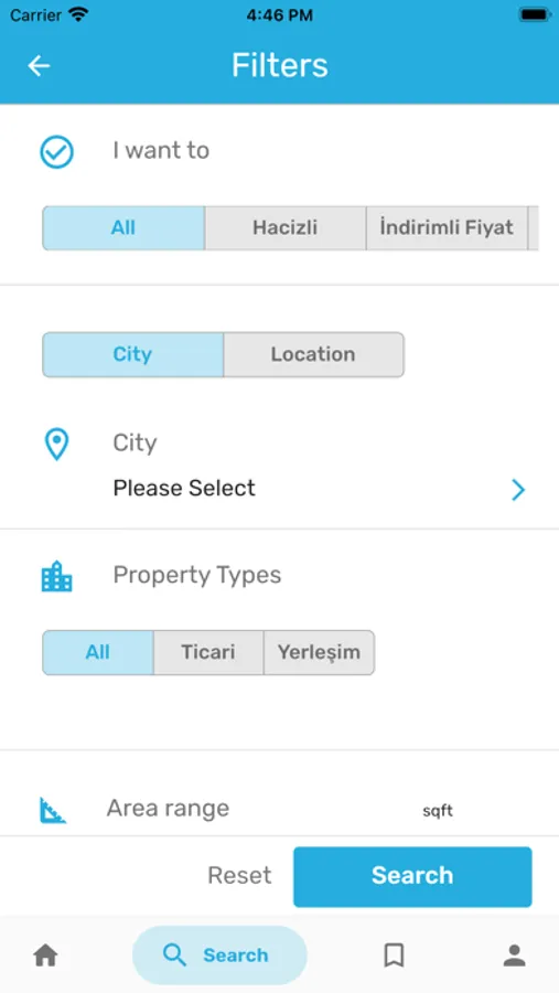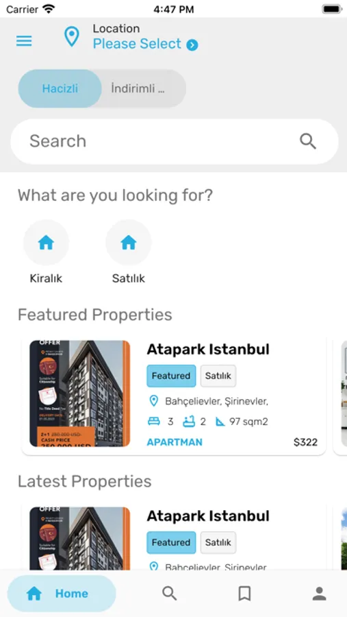 2) With the detailed filtering feature, you can filter the listings according to many features such as category, location, price, square meter, number of rooms, building age, number of floors.
