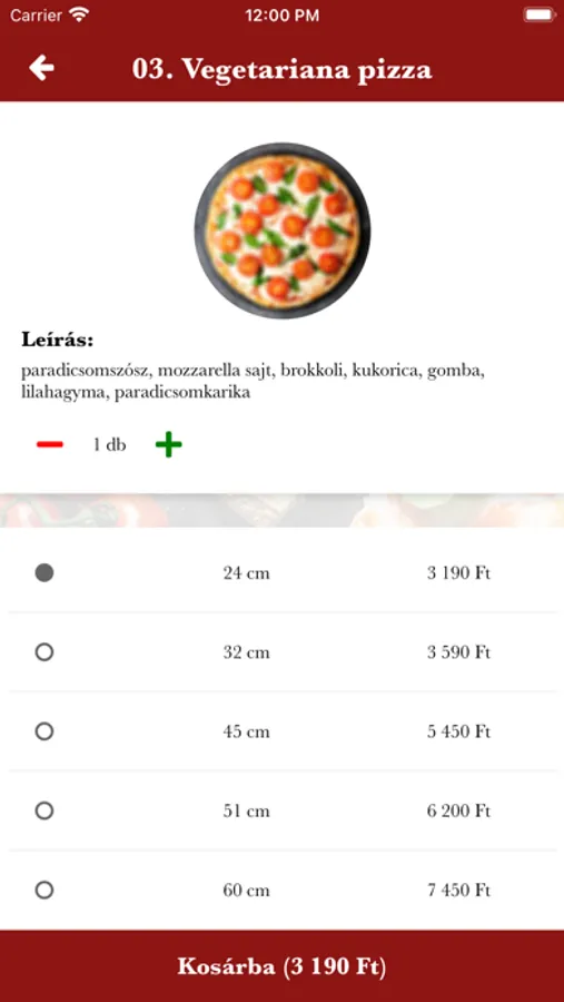 A törökbálinti Pizza Pizza ebédre és vacsorára egyaránt jó választás. Pizzarendelés esetén ízlésednek megfelelően választhatsz, hogy vegetáriánus vagy hússal megszórt, csípős vagy könnyű ízeket kívánsz inkább. A pizza rendelhető öt átmérővel egyaránt, tehát a létező szinte összes méretben. A pizzák mellett éttermünknél kapható pizzagolyó, pizza tekercs, hamburger, gyros, falafel, frissensült, vega étel, tészta, gyermek menü, köret, bőségtál, saláta, öntet, desszert és üdítő, hogy változatosabbá tegyük a kínálatot. Élvezd rajtunk keresztül az ételrendelés előnyeit és a pizzaevés adta örömöket!
