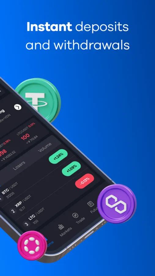 Choose between Limit Trading and Market Trading. Plus, enjoy the convenience of instant deposits and withdrawals.