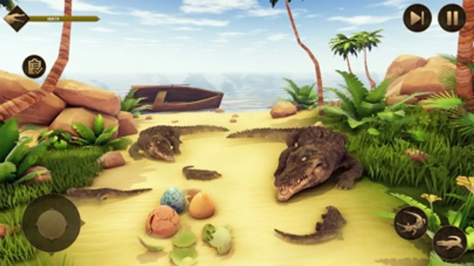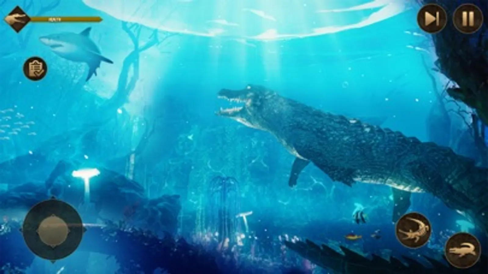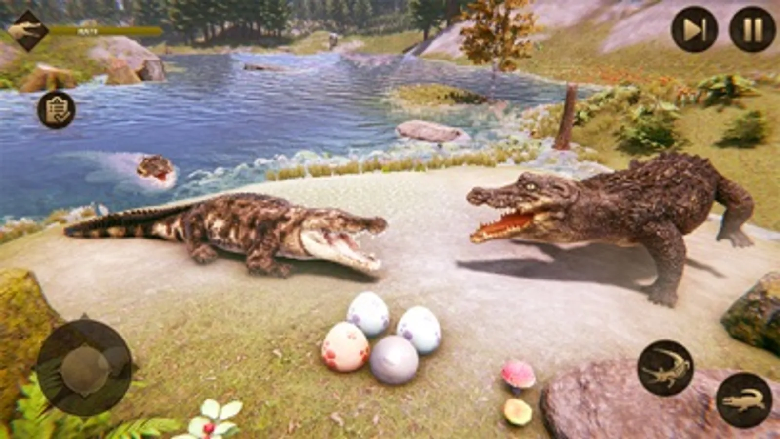 Let's play this game, in which the player will play as a hungry crocodile and hunt different animals. The crocodile hides itself in the deep water and sneakily attacks your hunt. Kill multiple animals when they come to drink water from the river. Be an angry crocodile and hunt different wild animals in the underwater to eat them. The wild crocodile hunt different kind of the animal like a zebra, warthog, wildebeest, hyenas. You have played many crocodile games, but play this you will forget others. In this game, you will experience the thrill of attacking prey. The crocodile is born and spends a good time with family. Then another wild crocodile attacks them and kills your family. The newborn hides itself in deep water to save himself from the enemies. Now the newborn takes revenge from your enemies and attacks to kill them using hunting skills. After some time, wild enemies will come into their territory to attack on. Now the crocodile will fight him and win the territory from the enemies. The hungry crocodile eats the fresh fishes, deer, rabbits and other wild animals to maintain your energy.