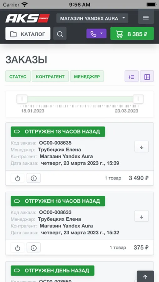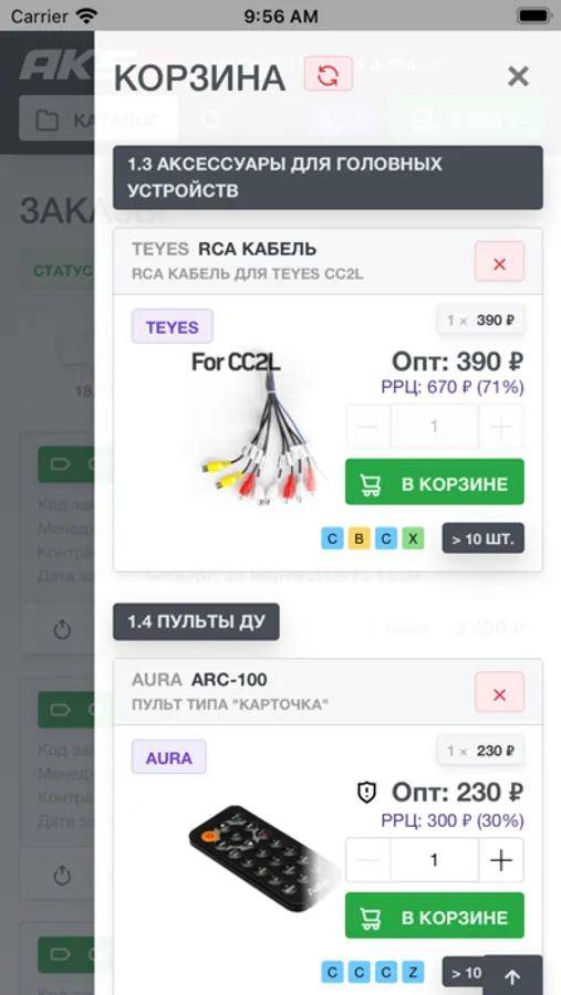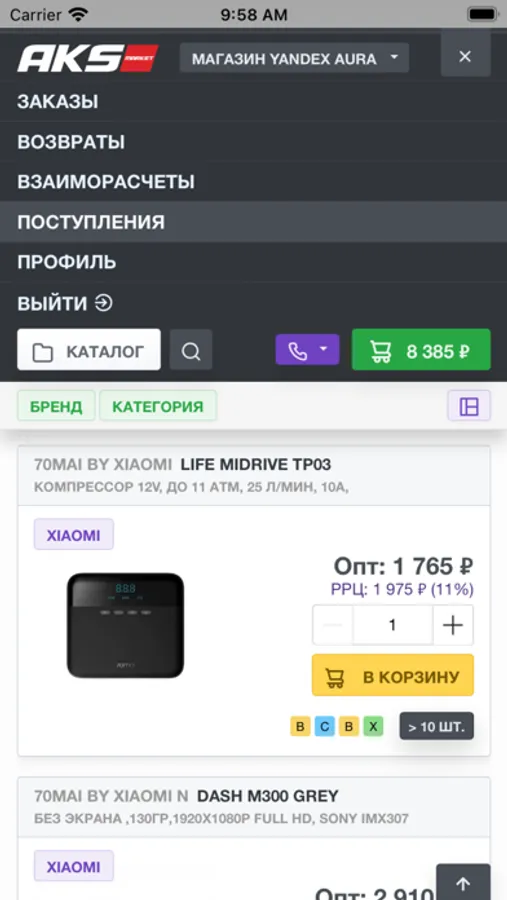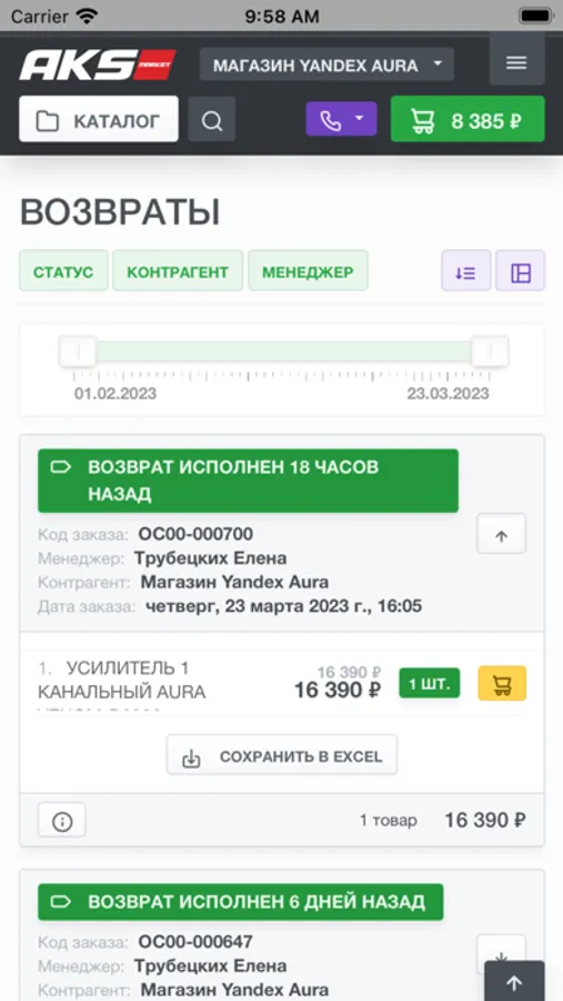 Личный кабинет для оптовых партнеров, позволяет размещать заказы, оформлять возвраты, отслеживать их статусы.