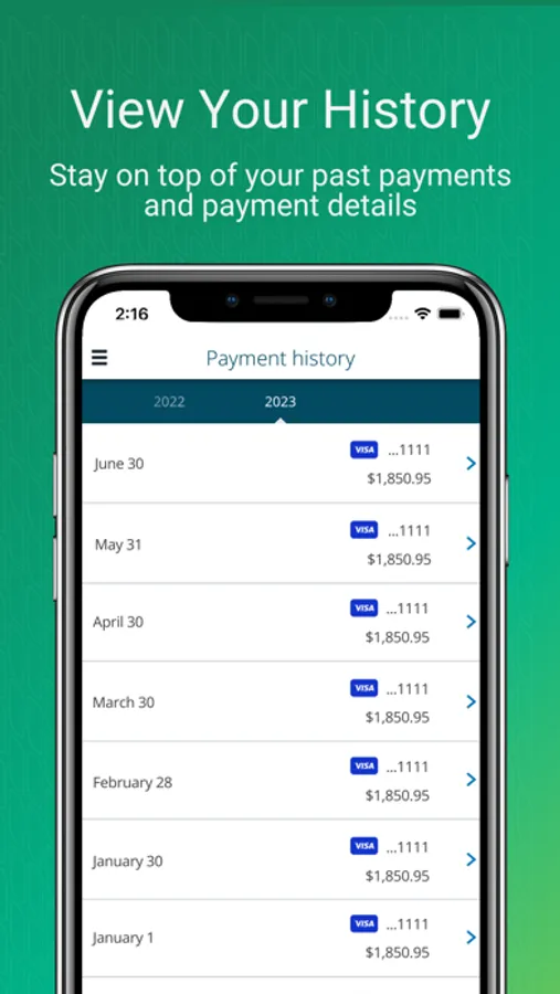 • History: See all your past payments and payment details made using RentPayment