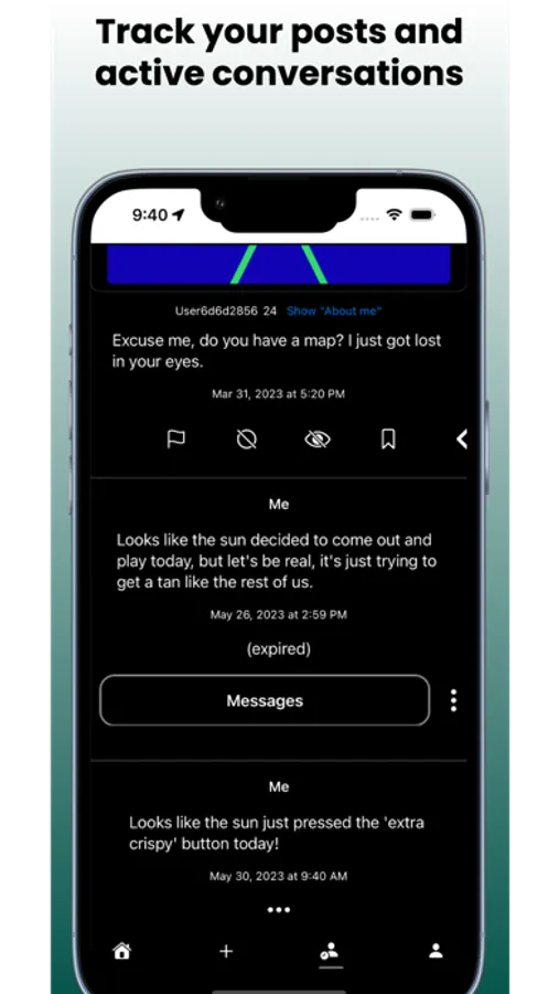 Ever wished you could keep track of your messages and conversations? Your wish is our command. A dedicated tab makes it super easy to monitor your posts and ongoing conversations.