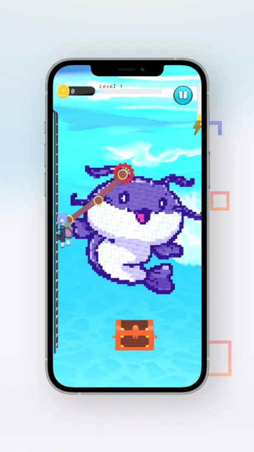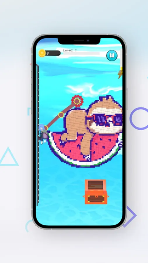 As you smash through objects, the pieces accumulate in a basket below, turning into gold. You can use this gold to upgrade your energy, machine size, and machine extension, which will help you clear levels more easily.