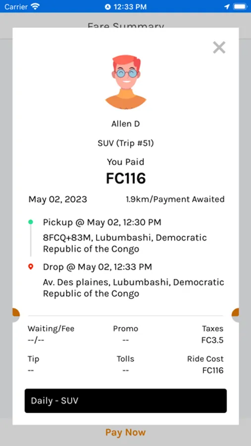 The rider app is for free for a trial period, then it will be purchased once for all, this app is to assist everyone in even remote places to request a taxi in his proximity, the rider will have to choose the type of the vehicle he would like to ride, he will determine the place where he is going, the rider has the possibility to cancel his ride if he did not take it due to the driver's mistake, the rider will pay the ride once dropped at his destination.