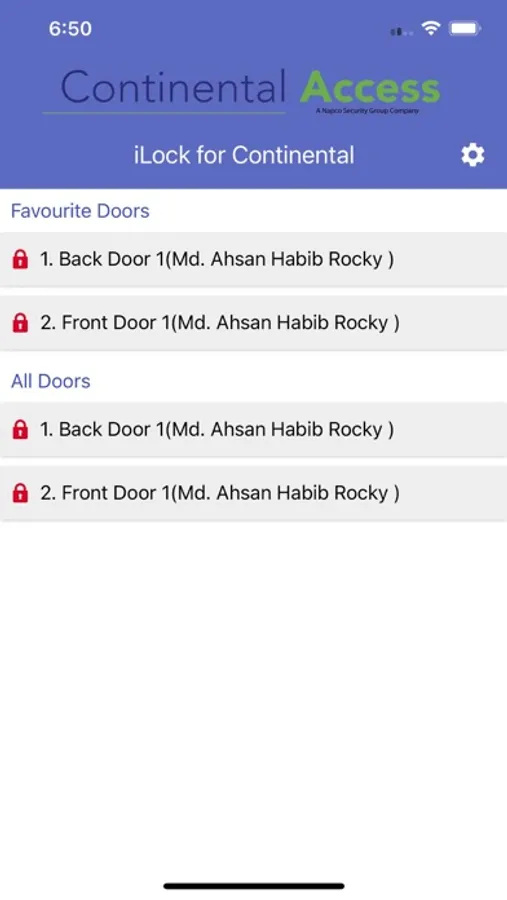 The "iLock for Continental" works in conjunction with the Continental Access CA4K software. The iLock app communicates to Architech series locks that contain Bluetooth LE technology. In addition, the iLock app communicates to a Bluetooth Reader Module, that wires in parallel with a standard weigand reader, making the reader bluetooth enabled. The iLock app provides the ability to enroll standard credentials, in addition to a maintenance (admin) credential. The maintenance (admin) credential provides the ability to change the default settings in the bluetooth reader module. Upon selecting an enrolled Door in the app, an Unlock icon will display to unlock the door. The iLock App also provides an "Unlock When Near" feature.