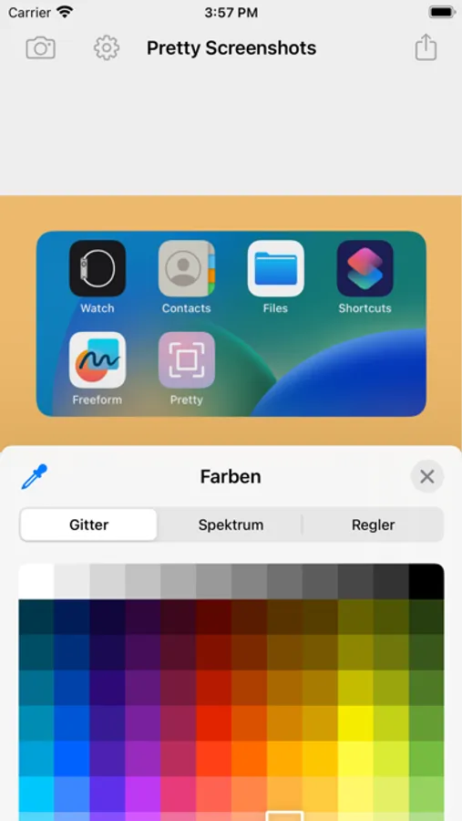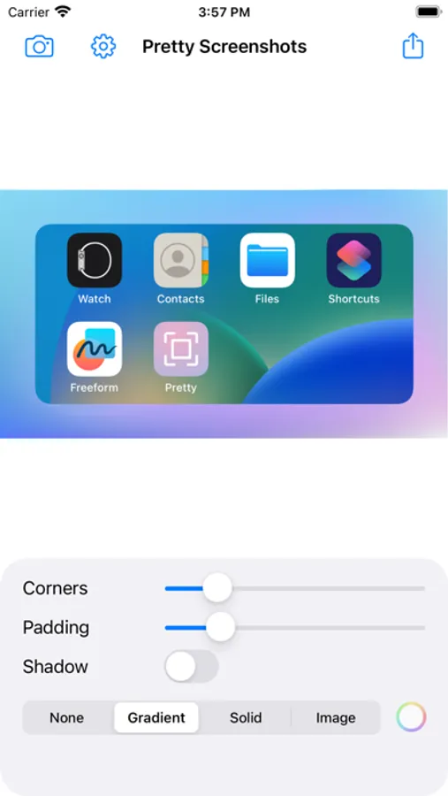 Prettify your iOS screenshots with rounded corners, shadows, and a background (gradient, solid color or own image from Gallery).