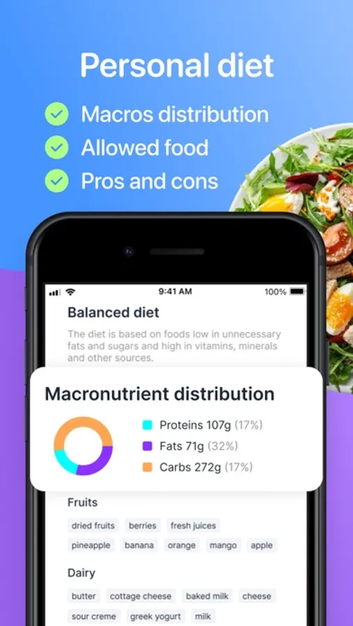 With this app, you can easily log your daily meals, snacks, and drinks to get an accurate picture of your calorie intake. You'll see detailed breakdowns of your macronutrient intake (proteins, carbs, and fats), and get instant feedback on how well you're sticking to your goals. It's a food diary that fits right into your pocket!