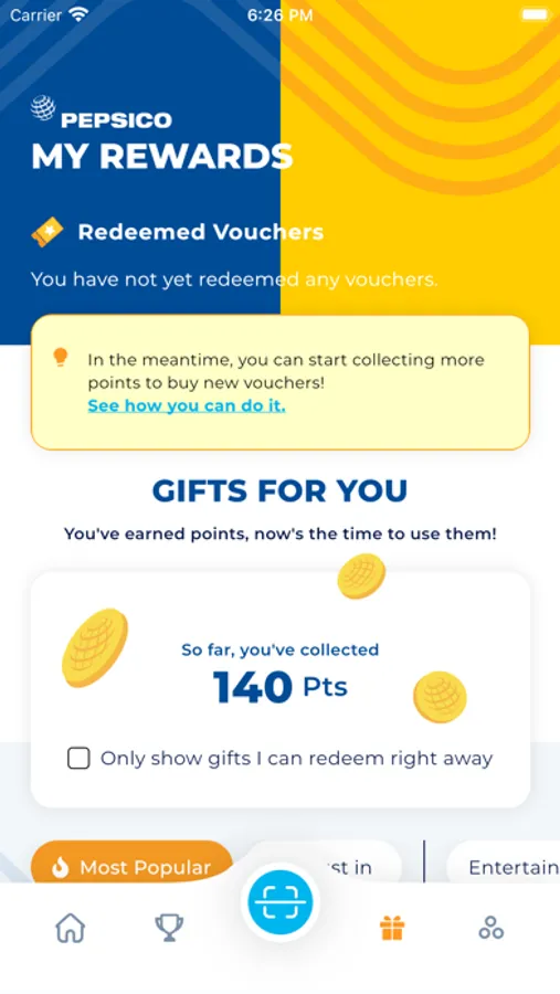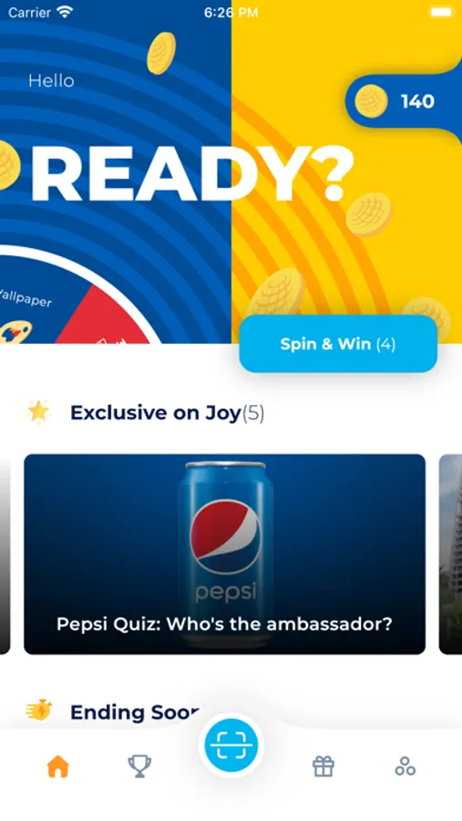 The PepsiCo Joy app is your perfect companion for all things fun. Start collecting your points now and exchange them for exclusive and fantastic rewards! Coupons, tickets, discounts, games, free subscriptions, and valuable gifts are renewed every day.