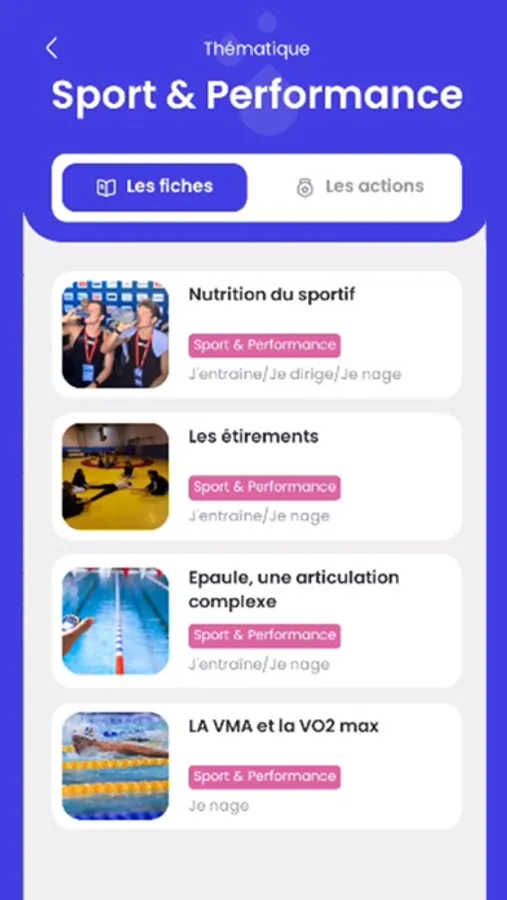 Ces fiches permettent d'accompagner les différents acteurs de notre ligue, nos comités et nos clubs : à destination des entraineurs, dirigeants et des nageurs & parents, elles proposent des contenus riches et variés ainsi que des actions à mettre en œuvre de manière autonome, au niveau du club ou bien grâce aux partenaires. Ces actions peuvent être remontées à la ligue, via l'application, afin d'être valorisées.