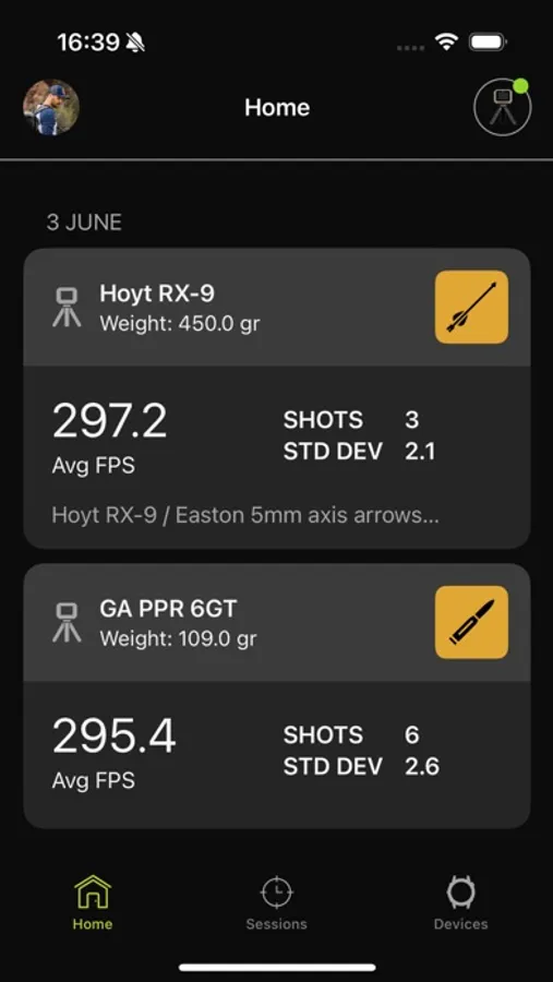 Use the ShotView™ app to connect to your Xero® C1 Pro chronograph. After a shooting session is completed, see your ballistic data on the app, where it is organized and easy to interpret. Analyze shot data, including speed, deviation, extreme spread, kinetic energy and more — and export the raw data to CSV format. Exclude cold bore shots and other outliers from session calculations as desired. Create custom names for each session, add notes for specific shots, and mark clean bore and cold bore attributes for each shot. Filter by weapon type to quickly access specific sessions for review.