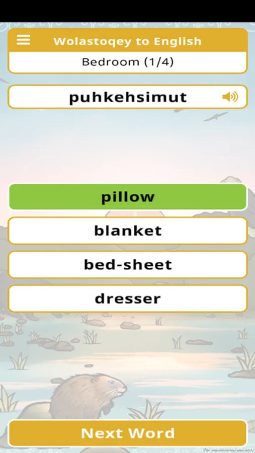 - Quiz yourself by matching English words to Wolastoqey words, and vice versa