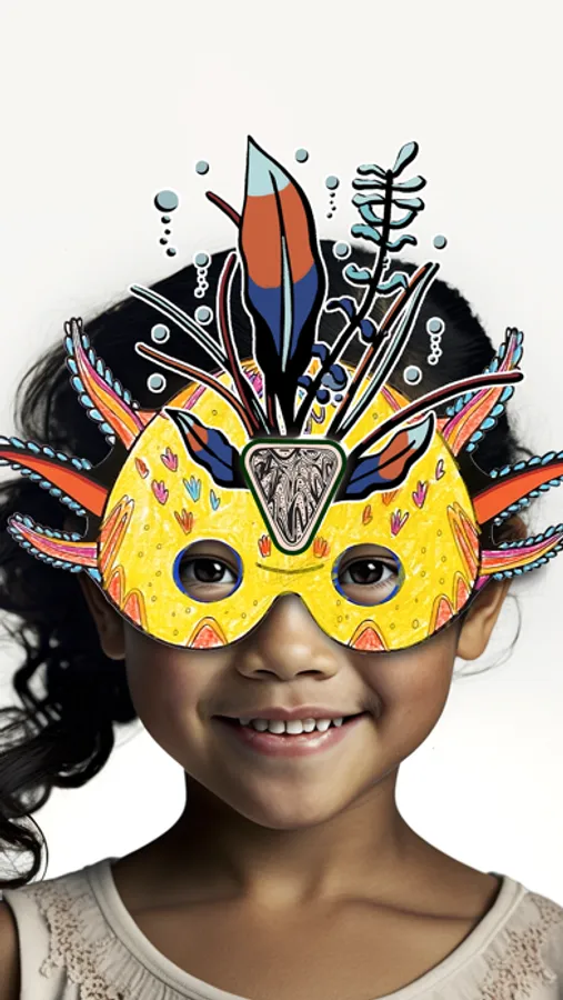 Les masques prennent vie et s’animent sur le visage des enfants grâce à des autocollants.