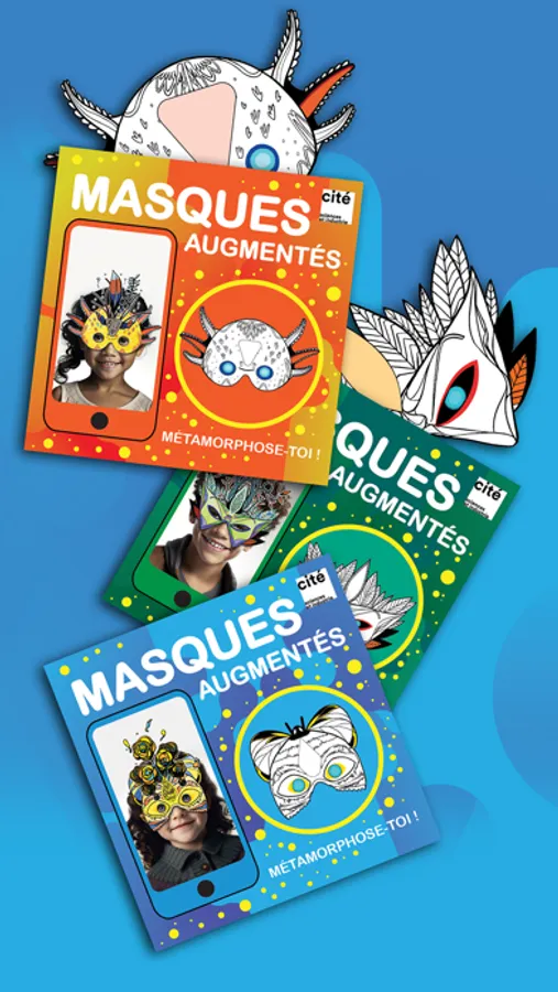 Métamorphoses – les masques est une application de réalité augmentée utilisant des masques papier d’animaux et de créatures à personnaliser pour se transformer en êtres magiques.