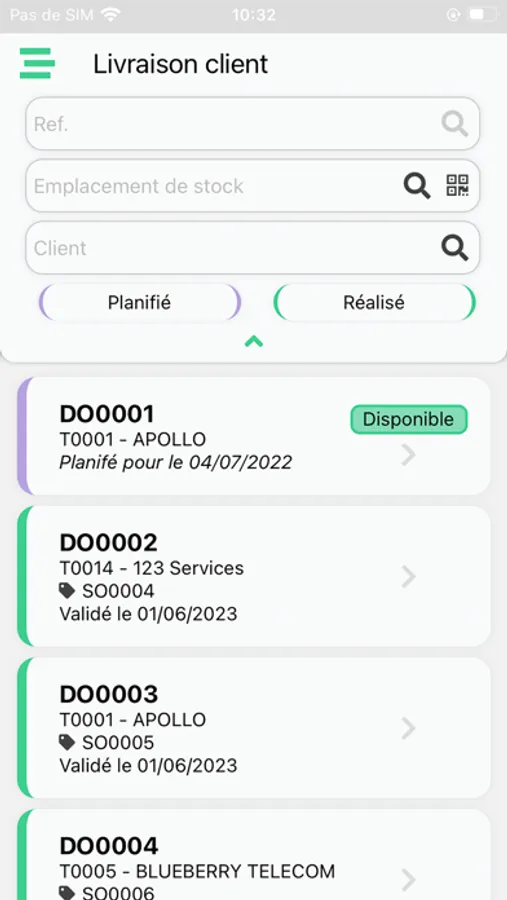 - Production order: visualization (with information on linked sales order or MO links), management of consumed, manufactured and scrap products, status update