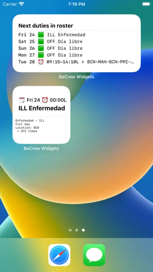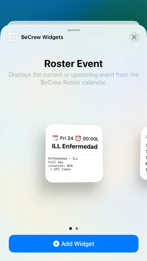 Check your roster next duties directly from the homescreen. This app needs BeCrew to work, as it uses the calendar export functionality of the main app to display the events.