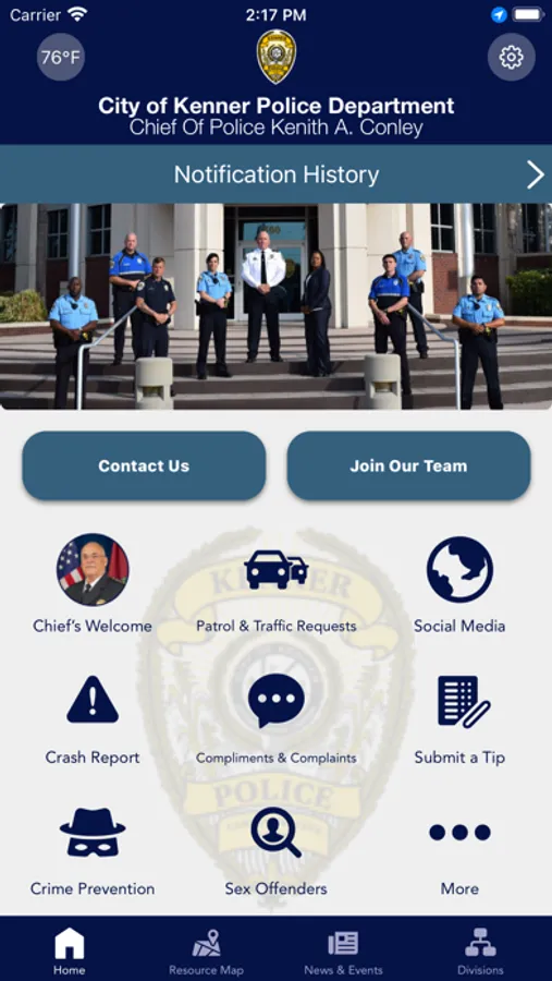 The City of Kenner Police Department mobile application is an interactive app which will help improve our communication with the citizens of Kenner and surrounding area. The purpose of this app is to improve our ability to communicate with our citizens Information which will include, but not be limited to Crash Reports, Submit a Tip, Crime Prevention, Sex Offenders, FAQs and more. Citizens may submit a crime tip directly through the app, as well as see and share social media posts. By empowering people through technology, the City of Kenner Police Department will be able to better protect our county.