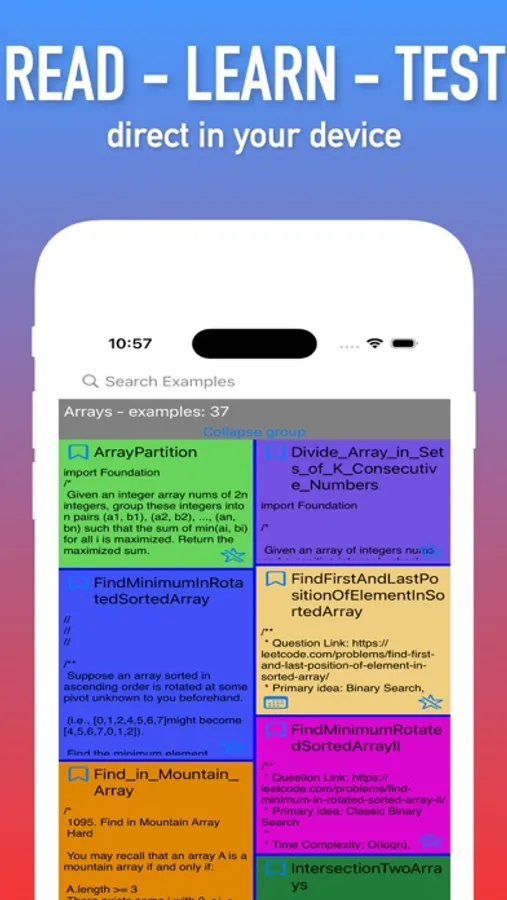 This educational and reference App allows you to read examples of the vast majority of challenges proposed by online platforms, directly on your favorite device, executing these samples and observing the results. Separated by categories and also indexed for better consultation, you can read, study, learn, and analyze the algorithms whenever you need and in the best way you choose.