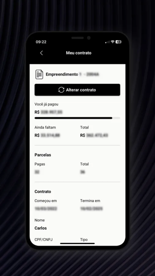 - Visualização dos contratos: Veja um resumo do seu contrato, como saldo pago e parcelas.