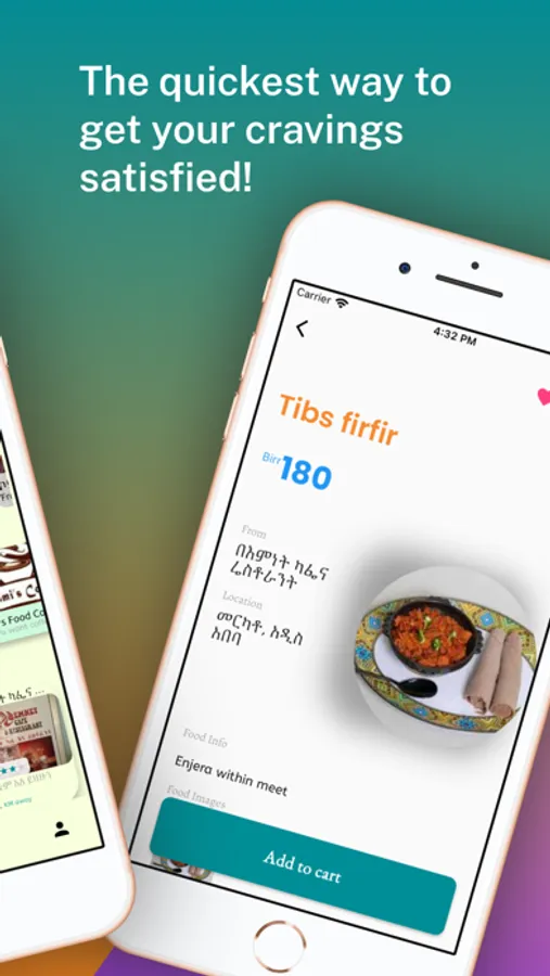 Our app offers a simple and hassle-free way to order food online, giving you the freedom to enjoy your meals without any stress. Whether you're craving Ethiopian cuisine, international flavors, or delicious desserts, we've got you covered.
