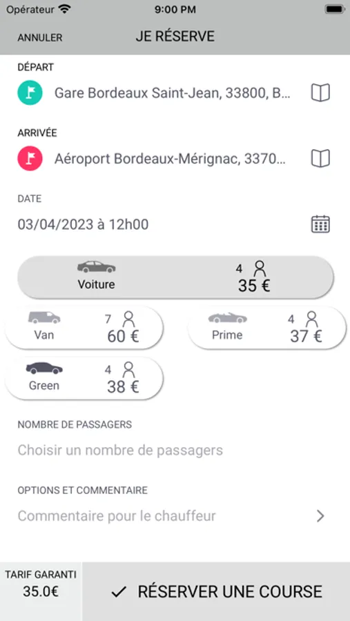 XGREEN - Reservez un TAXI/VTC