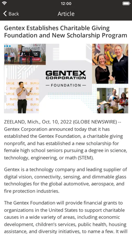 • The MyGentex app shares information on the company’s job openings.