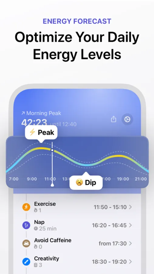 With Peaks, understanding your circadian rhythm - the internal clock that governs sleep, energy, and productivity - becomes a seamless, empowering experience. Peaks decodes and tracks your unique rhythm from your Apple Health data and crafts personalized routines to align with your rhythm. This alignment leads to a well-balanced day with improved sleep, sustained high energy, and boosted productivity.