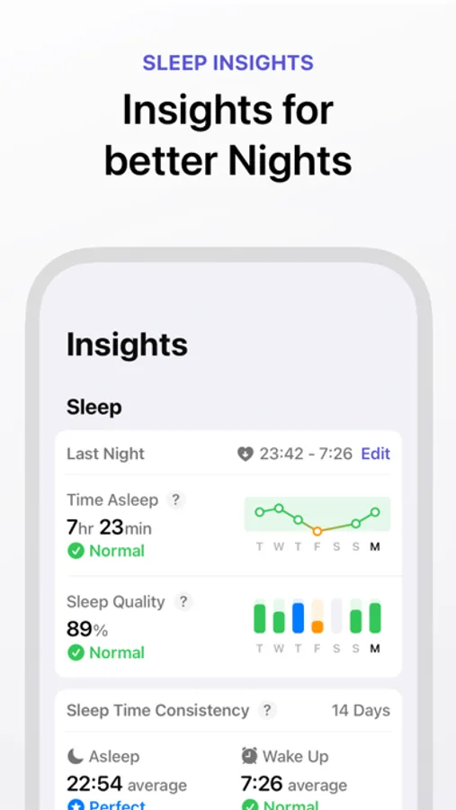 Easily check your rhythm from your home screen using our widget or get quick insights on the go on your Apple Watch.
