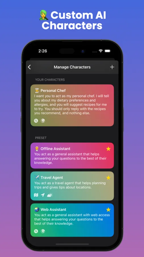 Yaki Chat enables you to customize AI characters according to your preferences, making your chat experience truly unique and personalized. Each character can be equipped with an array of AI tools.
